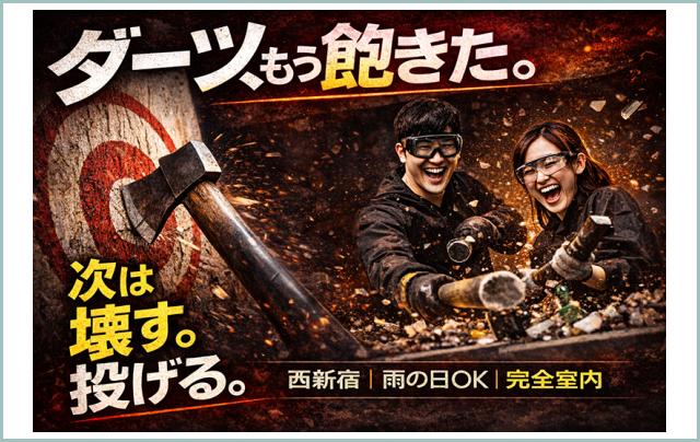 ダーツの次は「壊す・投げる」時代へ西新宿で“物壊し・斧投げ”…