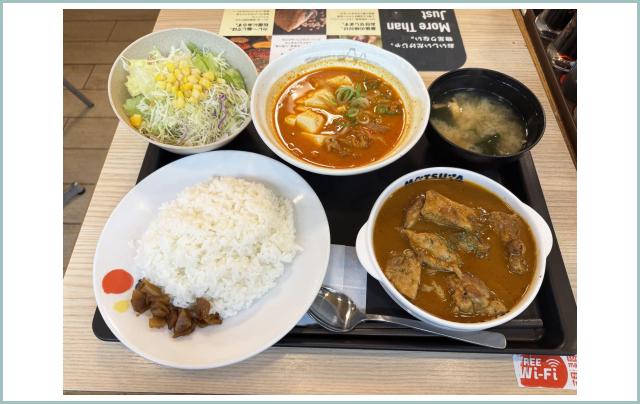 松屋のマッサマンカレーとキムチチゲを混ぜて召し上がりました…