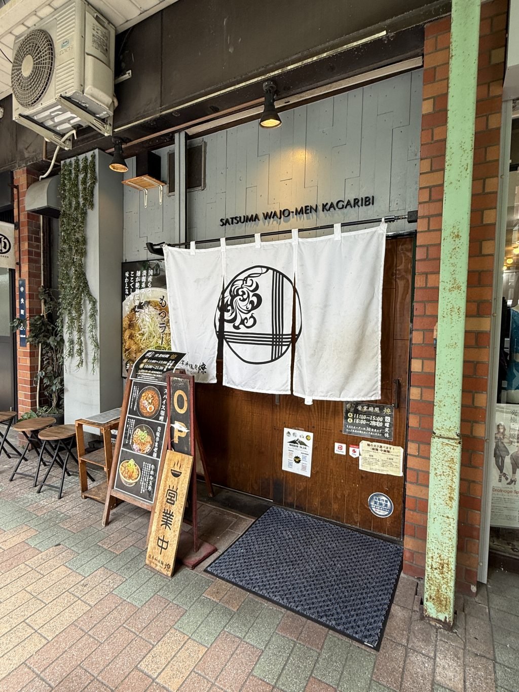 鹿児島中央駅の近く。市電の都通り電停そばにある「薩摩和穣麺 燎(かがりび)」。和牛もつラーメンが評判の人気店である。 カウンターが4席、テーブルが2つでそれぞれ2席のお店。ピーク時にはお店の外に行列ができる。
