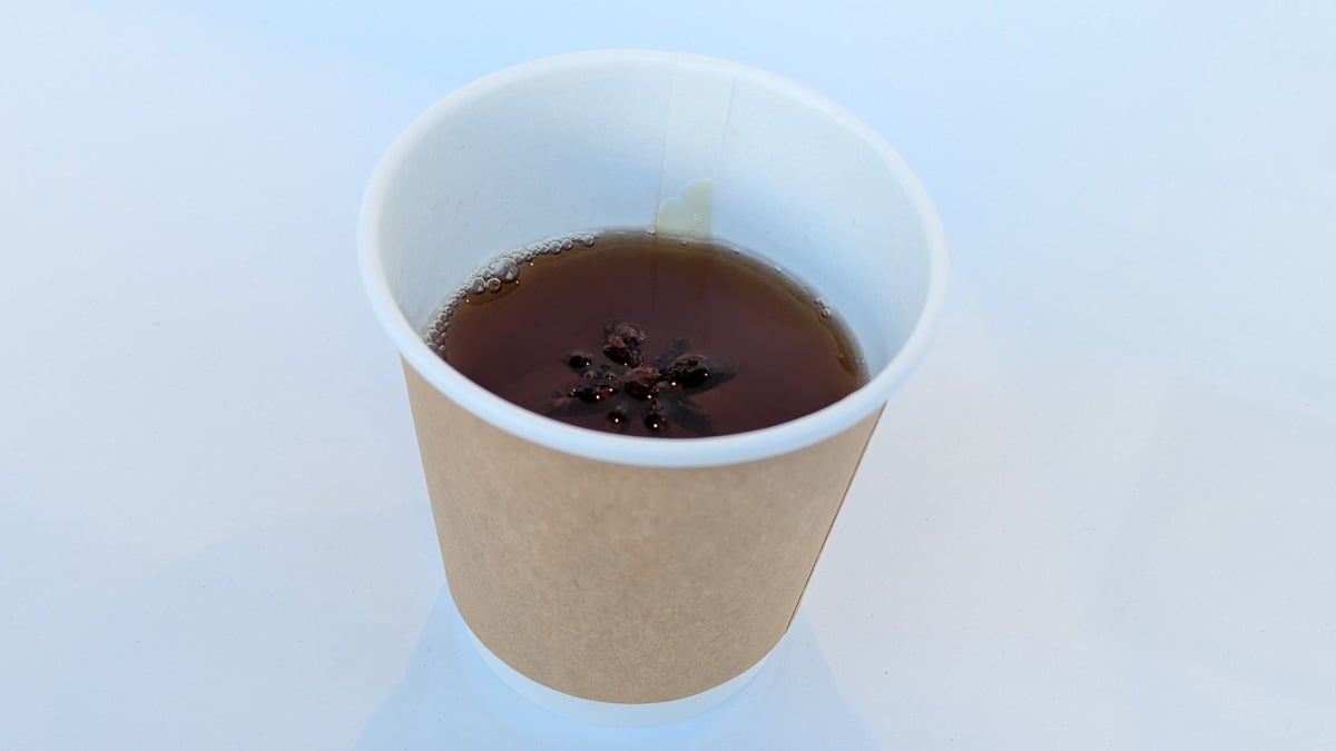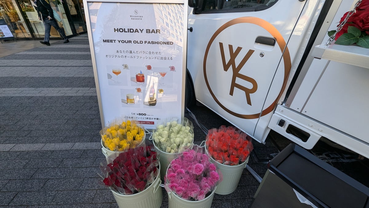 「ウッドフォードリザーブ ディスティラーズセレクト」に、レモンジュース、バニラシロップ、ローズティーを使用したホットカクテル。体が温まります。注文した人には5種類のバラから1本をプレゼント。HOLIDAY BARに持っていくと、バラに合わせたオリジナルカクテルを1杯目半額で楽しめます。