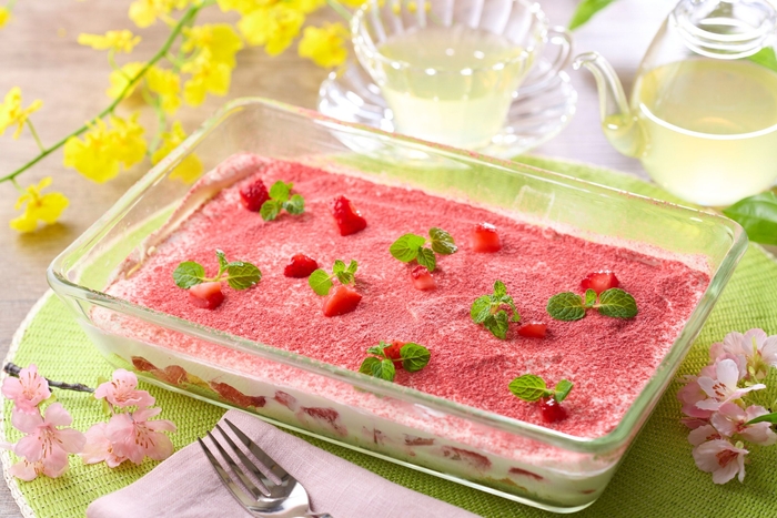 春らしくいちごを使用し、クリームとスポンジケーキの層の食感が楽しいティラミス風に仕上げました。