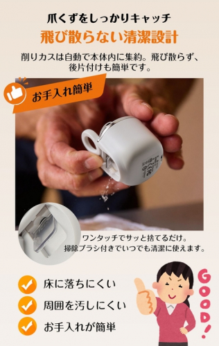 削った爪くずは本体内部の収納ボックスへ自動で集約。